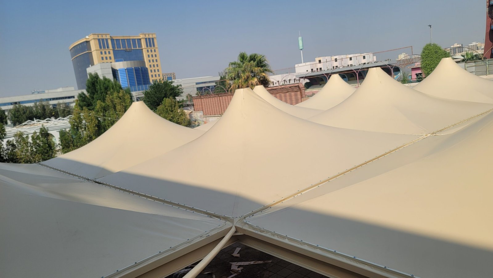 يتوفر لدينا جميع أنواع وأشكال مظلات المدارس والملاعب فمنها المظلات الهرمية وهي الأكثر استخداما عن باقي الأشكال الأخرى كالمظلات الدائرية ومظلات الإكس. ومتوفر لدينا أيضا مظلات الشد الإنشائي وساندوتش بانل ونادرا مايستخدم للساحات الكبيرة للنوادي الرياضية للمدارس. نعرض لكم صورة لمظلات مدارس بعد تركيب القماش بالكامل ويتوضح في صورة حجم التغطية والتضليل 0501079182